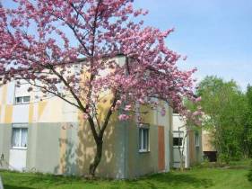 Schön blühende Pflanzen umgeben die Liegenschaft. |