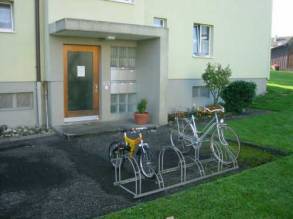 Hauseingang und Veloständer. |